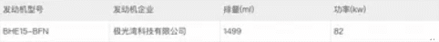 这次申报的新车,换装了型号为BHE15-BFN的1.5L自然吸气发动机。这台机器最大功率只有82千瓦(112马力)。
