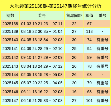 上期前区和值为101,开出2枚重号06,16,无连号,首尾间距为27。